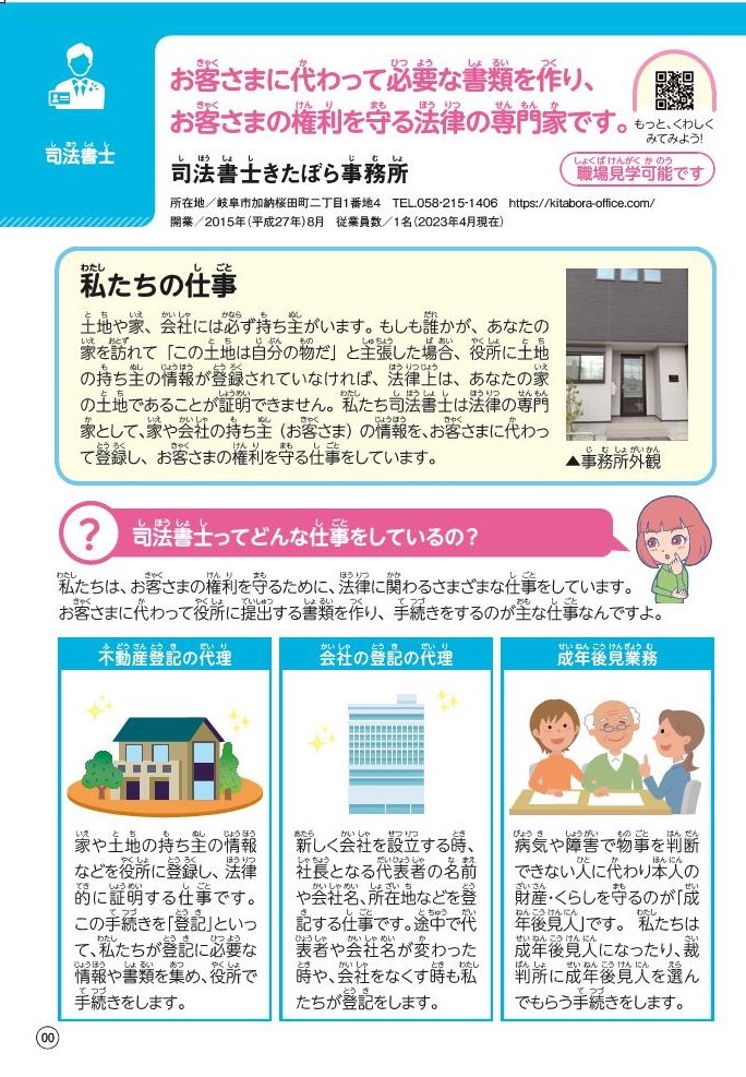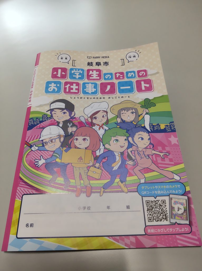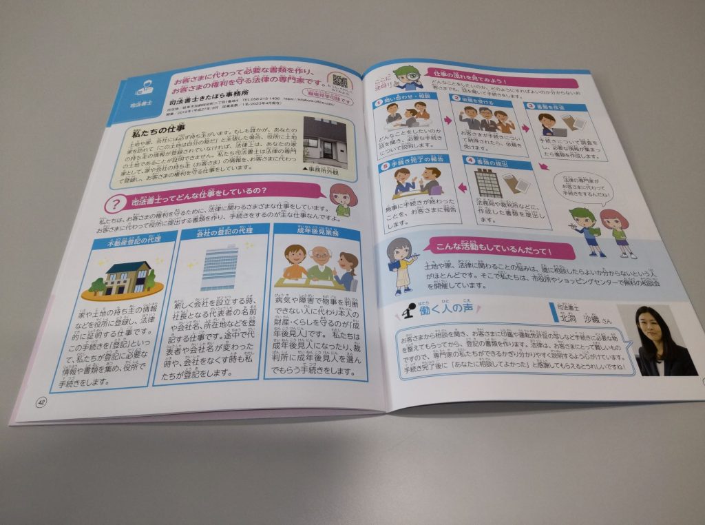 小学校3,4年生を対象に配布される「小学生のためのお仕事ノート」という冊子の2023年度岐阜市版に当事務所が掲載されました。